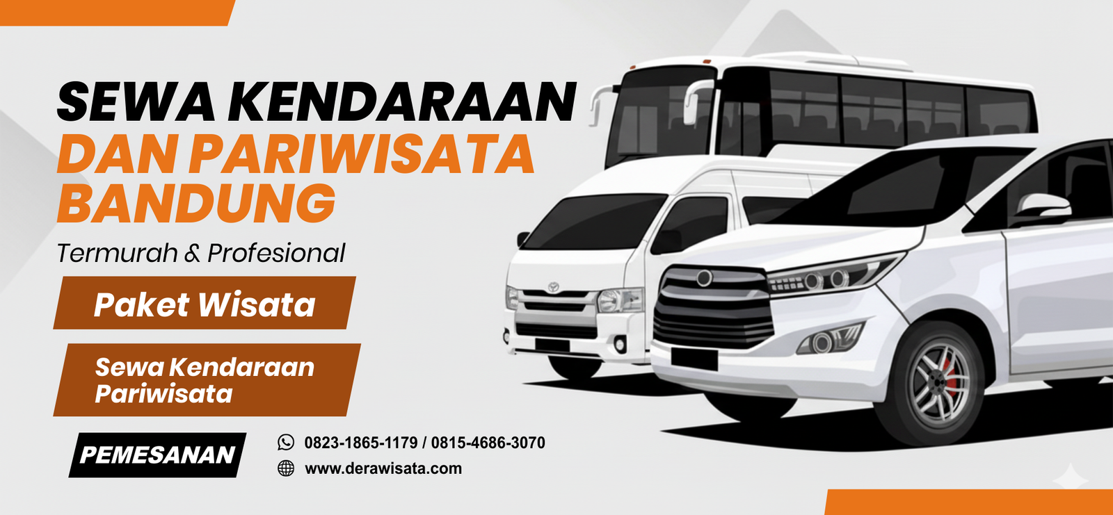 PT Dera Wisata Grup melayani Persewaan Kendaraan dan Paket Wisata untuk area Kota Bandung dan sekitarnya